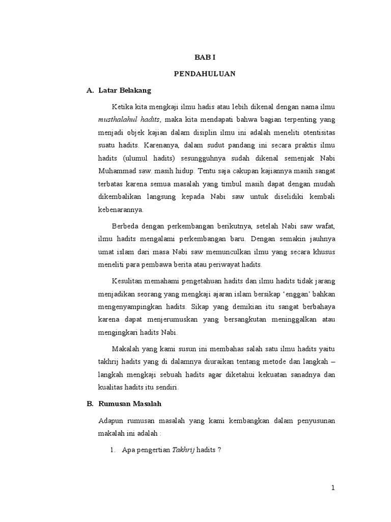 Ditulis oleh huda 22.19 tambah komentar. Tinjauan umum tentang takhrij hadis. Contoh makalah takhrij hadits tentang hak warisan. Dalam bab ini akan dikemukakan kesimpulan dan saran. Dari sekian banyak pengertian takhrij di atas, yang dimaksud .